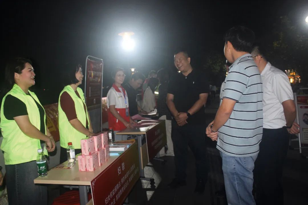 水口鎮(zhèn)黨委書(shū)記司徒錦泉,鎮(zhèn)黨委副書(shū)記、鎮(zhèn)長(zhǎng)胡萬(wàn)程帶隊(duì)來(lái)到婦聯(lián)攤位前檢查宣傳工作