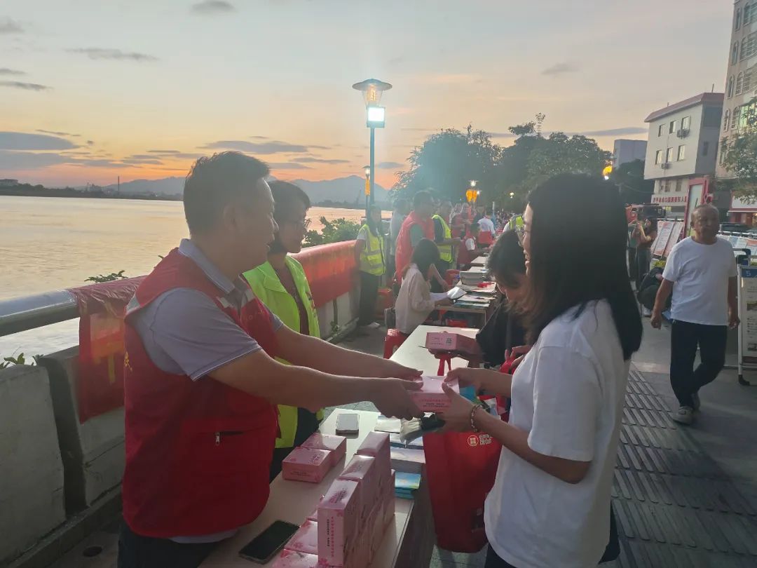 水口鎮(zhèn)人大副主席馮惠清帶領(lǐng)婦聯(lián)工作人員熱情地向過(guò)往群眾發(fā)放宣傳資料