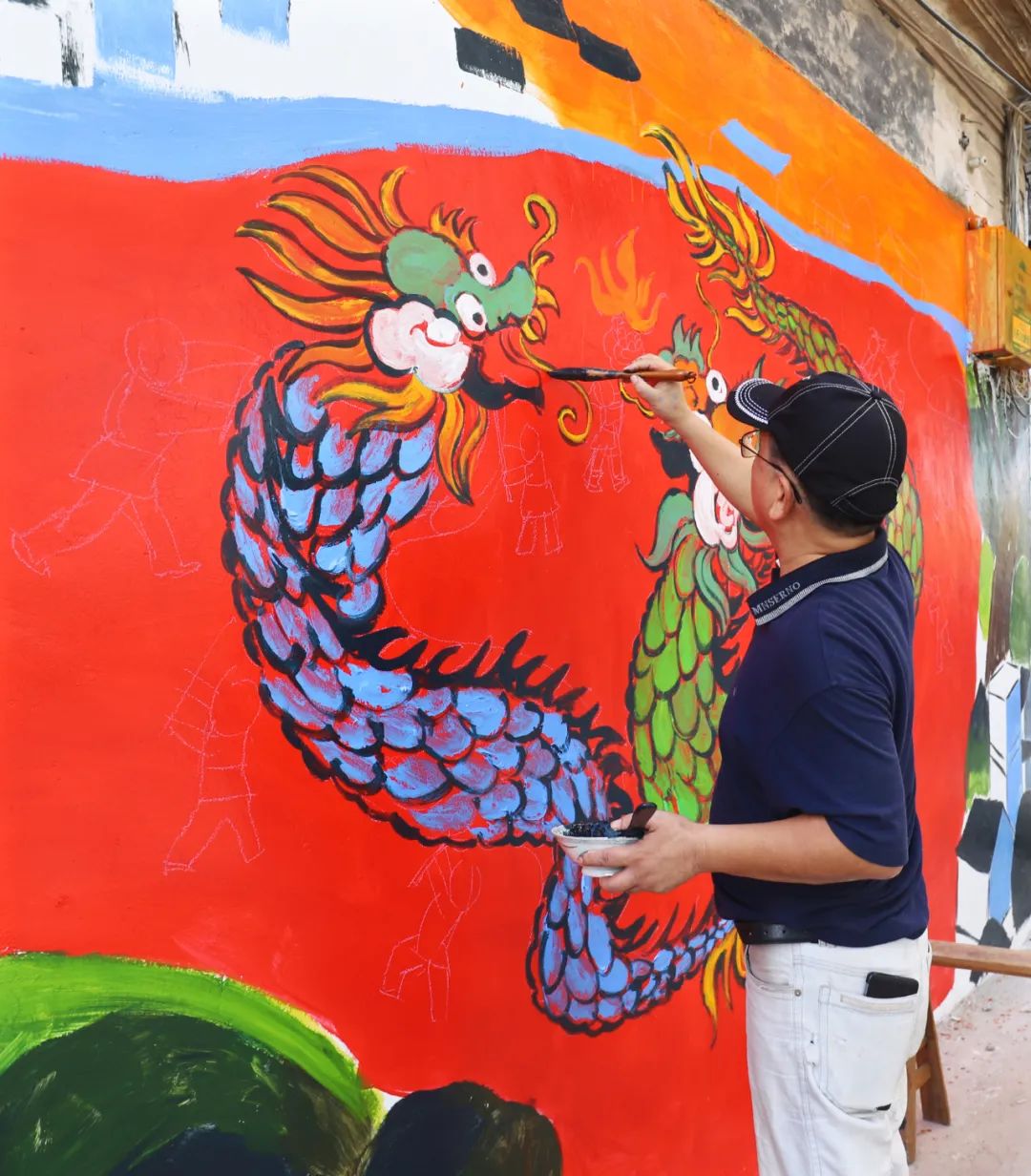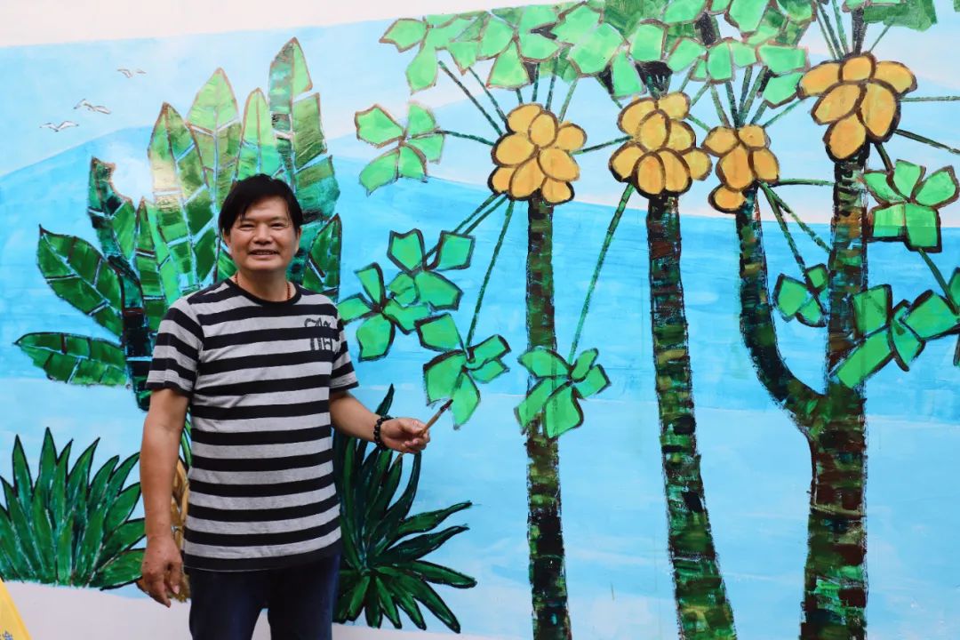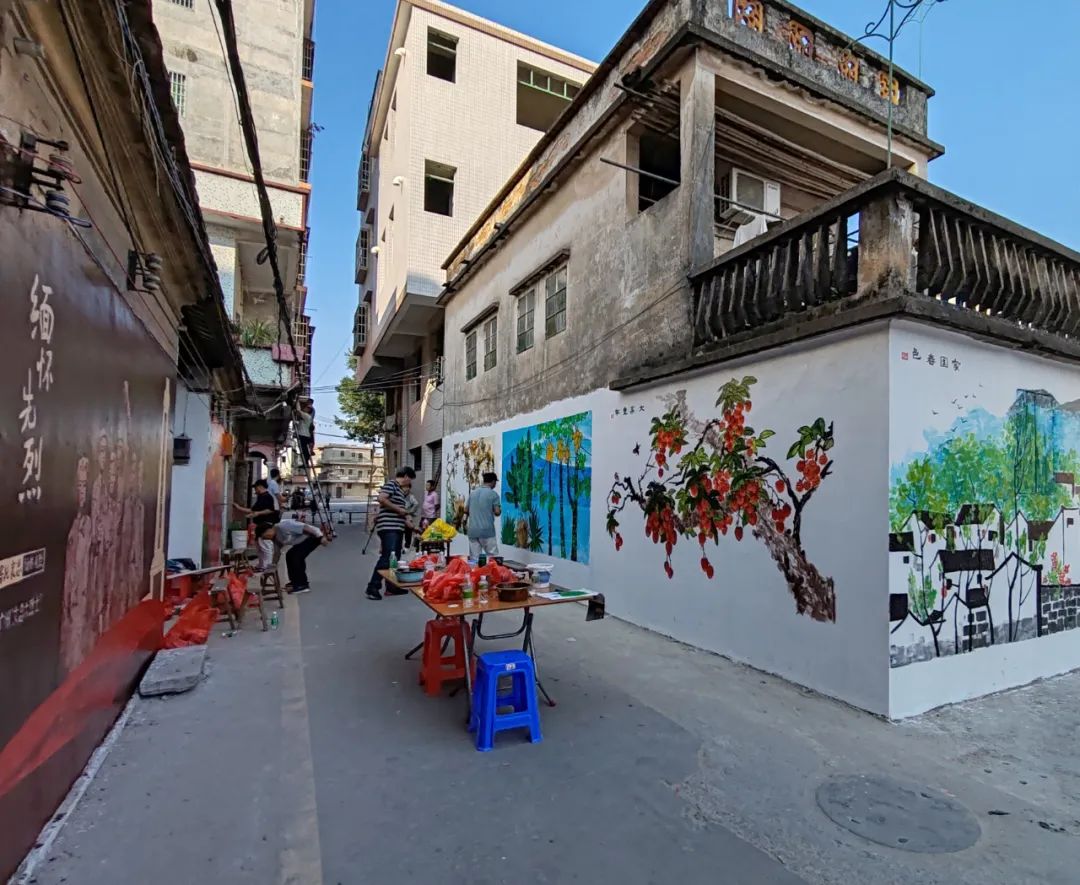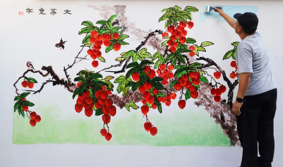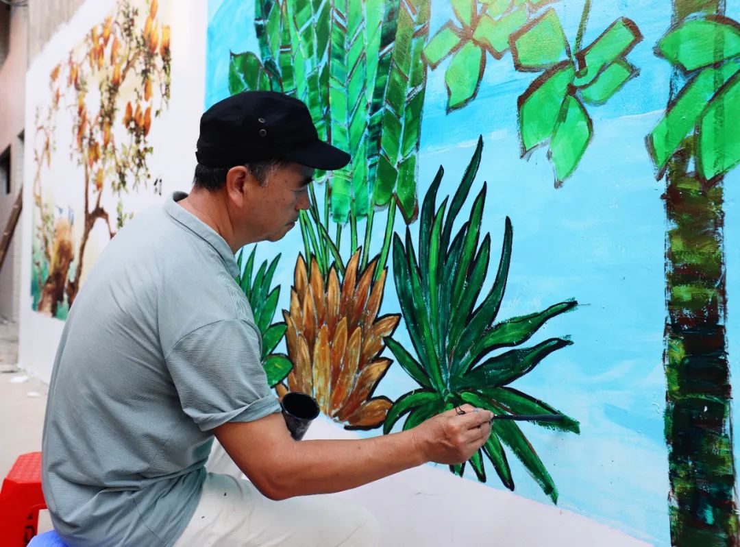 “在開始今天墻繪前,我們已經(jīng)提前進(jìn)行了兩次現(xiàn)場勘察,結(jié)合當(dāng)?shù)厝宋膬?nèi)涵、民俗風(fēng)情和自然景觀,精心構(gòu)思了系列草圖,希望通過創(chuàng)作反映時代新貌和群眾新生活的作品,助力‘百千萬工程’和美麗鄉(xiāng)村建設(shè)?!闭勂鸨敬位顒拥囊饬x和初衷,江門市政協(xié)專職常委、書畫院秘書長招文娟如是說。