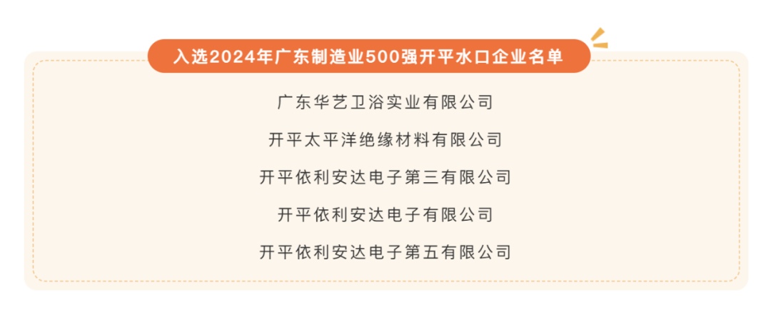廣東省制造業(yè)協(xié)會(huì)、暨南大學(xué)產(chǎn)業(yè)經(jīng)濟(jì)研究院、廣東省發(fā)展和改革研究院聯(lián)合發(fā)布《2024年廣東制造業(yè)500強(qiáng)企業(yè)研究報(bào)告》(下稱《報(bào)告》)。據(jù)悉,開平市水口鎮(zhèn)5家企業(yè)入選廣東制造業(yè)500強(qiáng),為高質(zhì)量發(fā)展提供有力支撐。