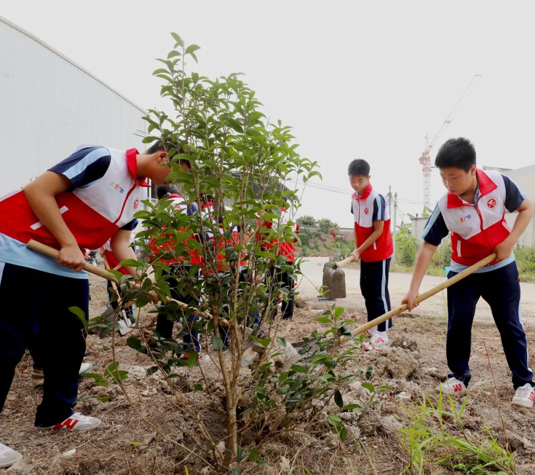 活動(dòng)現(xiàn)場(chǎng),青年志愿者和同學(xué)們干勁十足,有的揮鍬鏟土、扶苗填坑,有的踏土固根、提水澆灌,種下樹苗100棵,為初春的大地增添一抹新綠,讓村道兩旁綻放生機(jī)。