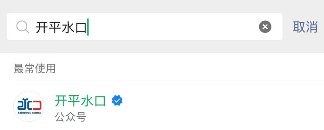 步驟一:微信搜索并關注【開平水口】公眾號。