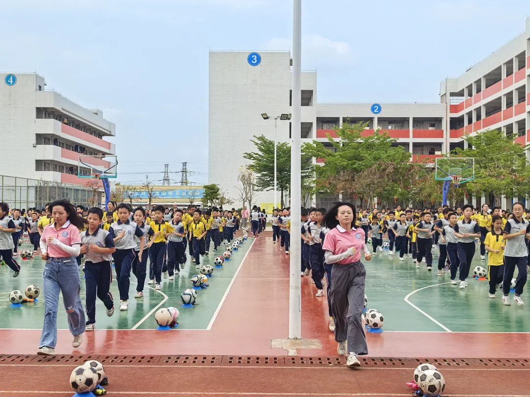 開平市水口鎮(zhèn)泮村小學(xué)大課間展示活動主要環(huán)節(jié)為廣播體操→跑操→籃球操→體能操→放松操,每個操之間穿插肺活量練習(xí)。同學(xué)們用整齊、規(guī)范、有力、流暢的動作,展示出健康活潑、積極向上的精神風(fēng)貌。