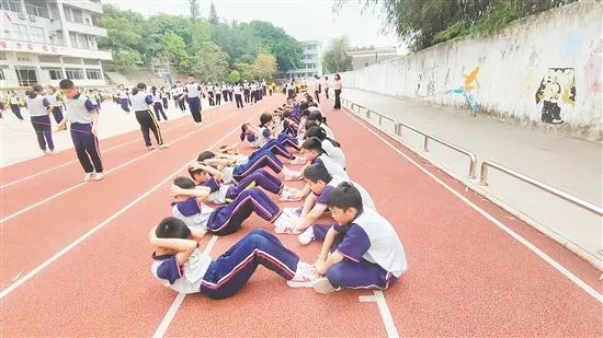 “一二一,一二一!”伴隨著清脆的口令聲,水口鎮(zhèn)龍?zhí)列W(xué)的同學(xué)們以班級為單位,踏著整齊的步伐進入操場。他們精神飽滿,隊列如行云流水,瞬間將操場裝點成一片律動的海洋;另外一批學(xué)生正在進行“仰臥起坐挑戰(zhàn)賽”,一張張小臉憋得通紅,卻洋溢著笑容。