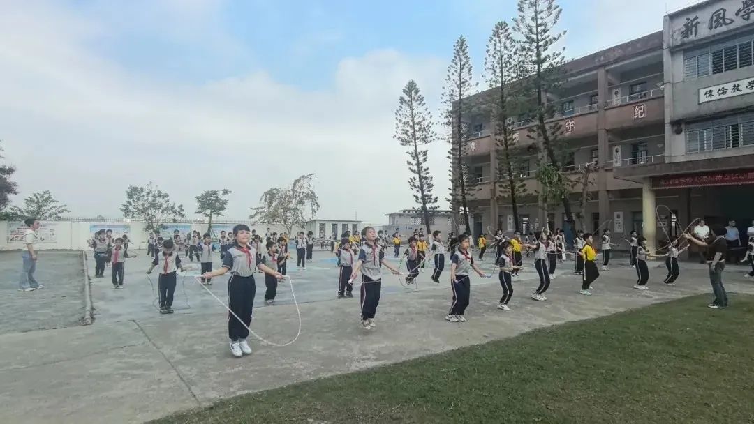 水口鎮(zhèn)致和小學(xué)新風(fēng)分教點不到兩百名學(xué)生,卻將跳繩玩出新意:雙人車輪跳、長繩八字穿花等高難度動作引來陣陣喝彩?!疤K成本低、易上手,還能培養(yǎng)默契?!痹摲纸厅c校長何兆亮邊說邊示范,不少低年級學(xué)生圍著他躍躍欲試。