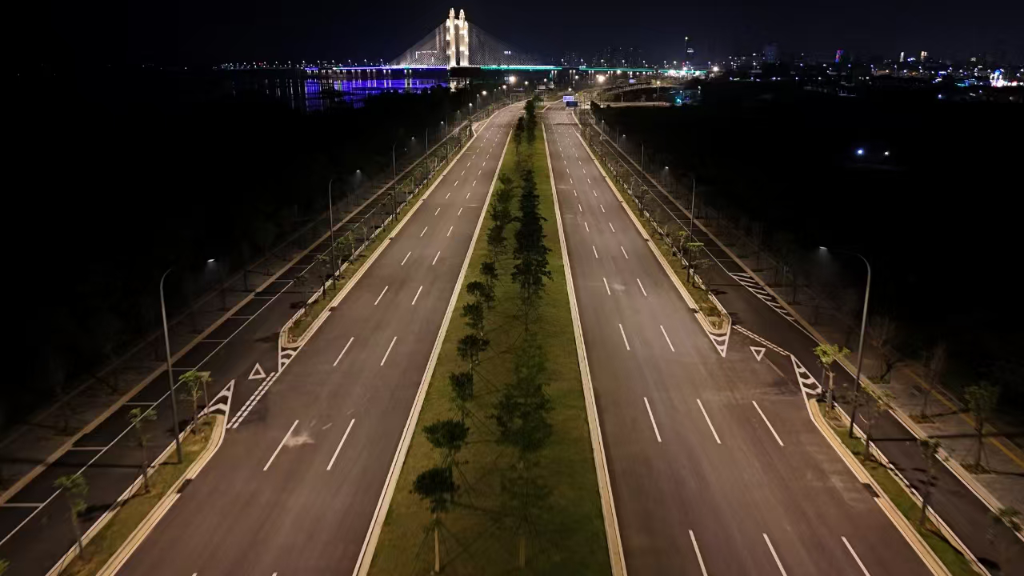 作為潭江新區(qū)聯(lián)通主城區(qū)的城市交通主干道,潭江大道西起新美大道,東至東九路,全長1.7公里,寬60米,雙向六車道設計,貫穿潭江新城核心區(qū)域。該道路的建成將有效減輕城區(qū)至沙岡段的交通壓力,同時通過優(yōu)化綠化帶、人行道及非機動車道布局,實現(xiàn)“人車分離”,為市民提供安全、舒適的出行體驗。