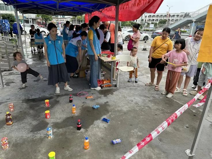 在“掌上明珠”游戲環(huán)節(jié),孩子們需要小心翼翼地將乒乓球平放在球拍上,繞過路障走向終點(diǎn),不僅考驗(yàn)了小朋友們的平衡能力,還鍛煉了他們的應(yīng)變能力;“安全知識大轉(zhuǎn)盤”游戲通過趣味問答形式普及防溺水、交通安全等知識,讓孩子們在游戲中學(xué)習(xí)自我保護(hù)技能;“成語拼圖挑戰(zhàn)”則對孩子們的思維敏捷性提出挑戰(zhàn),參與者需在限定時(shí)間內(nèi)將拆分的成語卡片拼湊完整,既有趣味又富有文化內(nèi)涵;“默契大考驗(yàn)”要求親子或伙伴背靠背夾氣球協(xié)作運(yùn)送,增進(jìn)了彼此默契;“歡樂套圈”環(huán)節(jié)更是將氣氛推向高潮,孩子們瞄準(zhǔn)目標(biāo)拋出圈圈,收獲滿滿的成就感與獎(jiǎng)品。每個(gè)游戲項(xiàng)目都充滿著趣味和挑戰(zhàn),吸引著眾多家長和孩子積極參與。