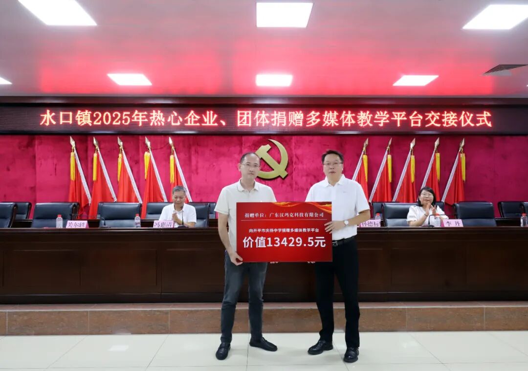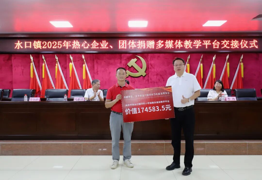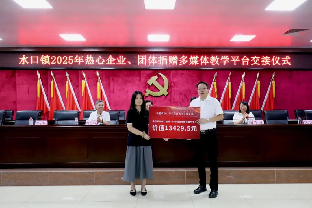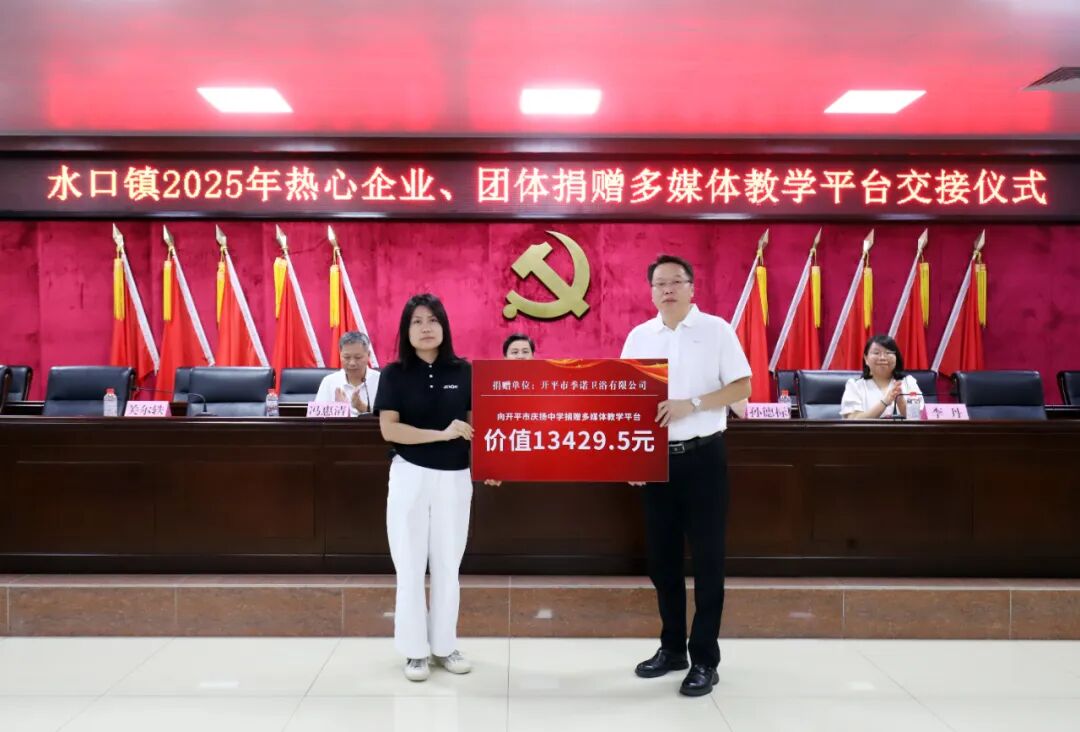 教育的高質(zhì)量發(fā)展離不開全社會的共同參與和鼎力支持。大會現(xiàn)場特別舉辦了捐贈儀式,熱心企業(yè)、團體積極踐行社會責任,為水口鎮(zhèn)教育事業(yè)貢獻力量。據(jù)統(tǒng)計,本次捐贈總額約68萬元,包含38個教學平臺一體機教學設備設施和獎教助學金。其中,開平市水口鎮(zhèn)泮村鄺氏族務理事會單獨捐贈了13個電化教學平臺,其他熱心企業(yè)合力捐贈了25個電化教學平臺。這些教學設備將直接用于水口鎮(zhèn)教育信息化建設,助力提升學?,F(xiàn)代化教學水平、優(yōu)化課堂互動體驗。獎教助學金將用于激勵一線教師深耕教學、潛心育人,從 “硬件升級” 與 “精神激勵” 雙維度為水口鎮(zhèn)教育質(zhì)量提升注入強勁動力。