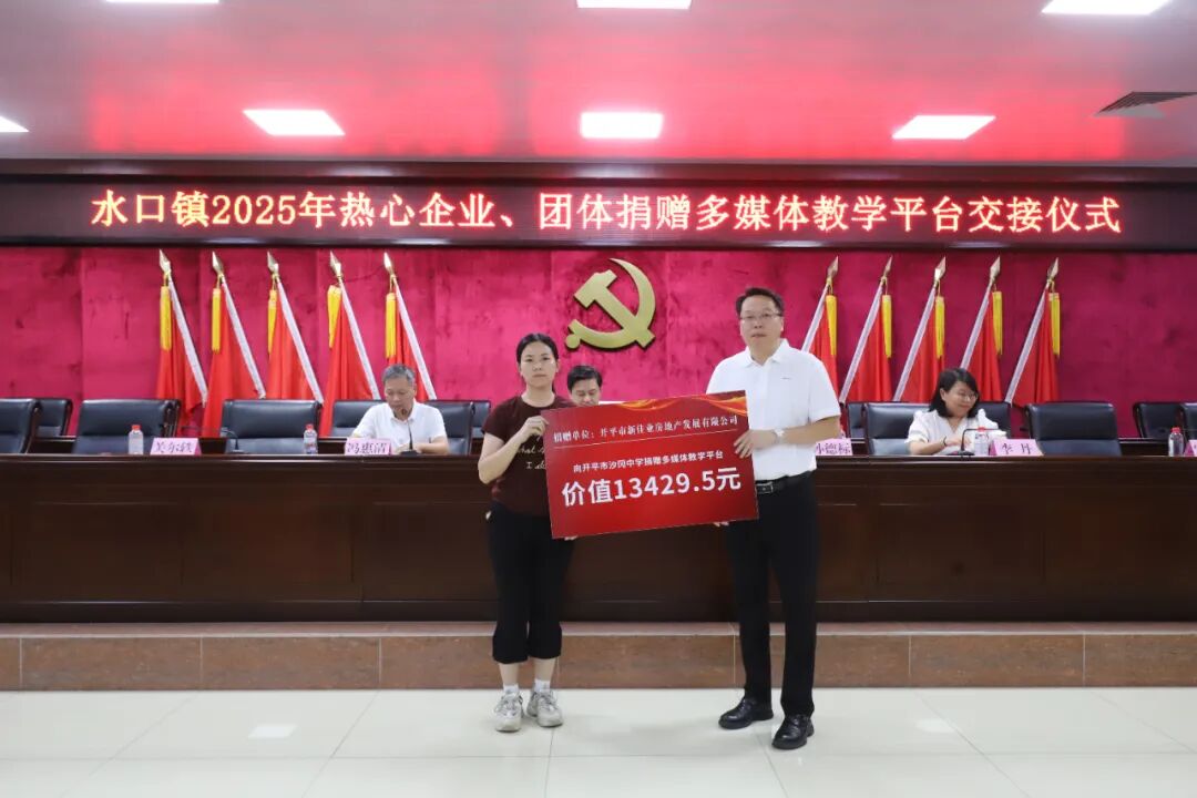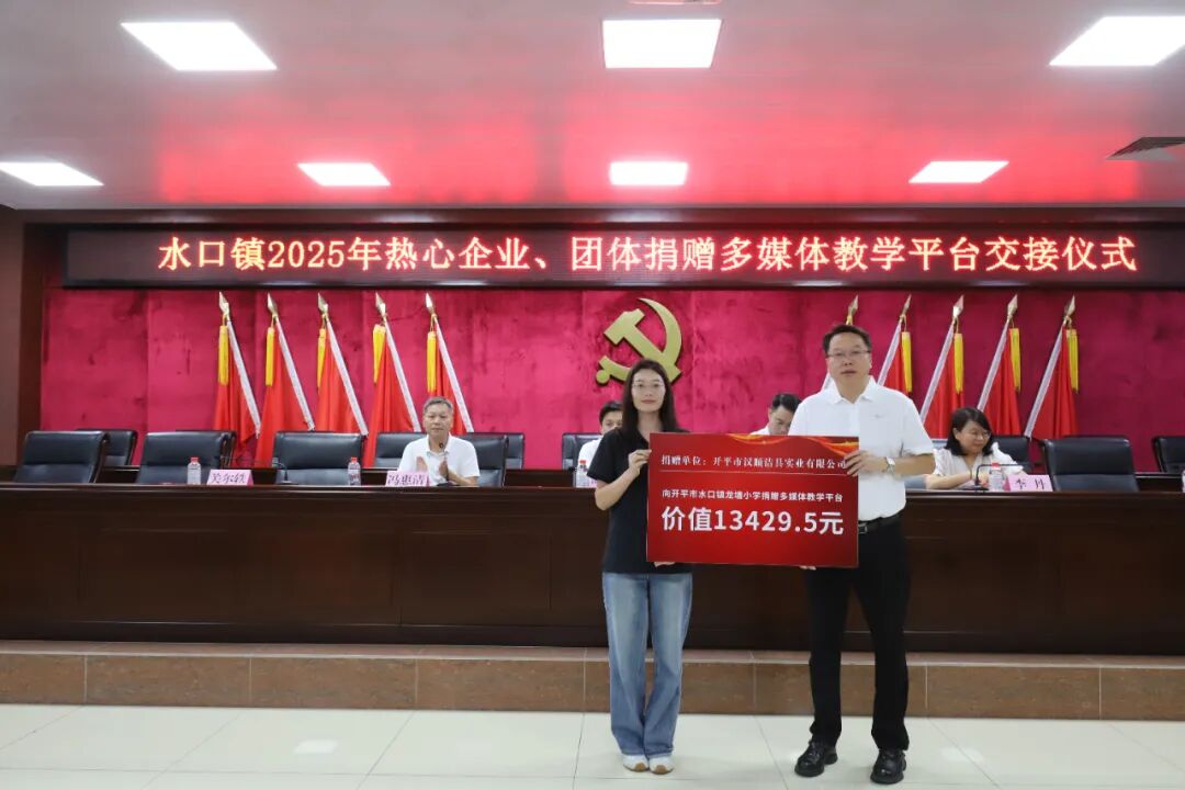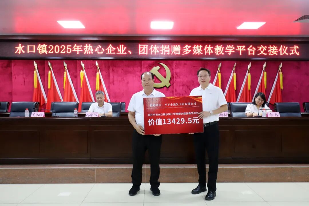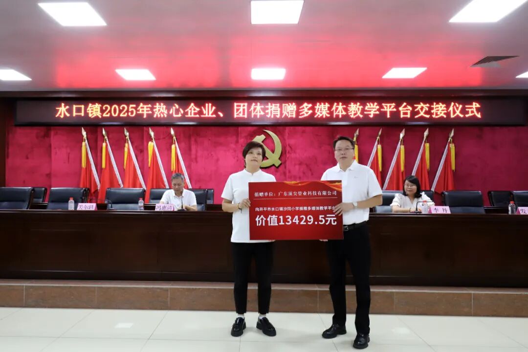 教育的高質(zhì)量發(fā)展離不開全社會的共同參與和鼎力支持。大會現(xiàn)場特別舉辦了捐贈儀式,熱心企業(yè)、團體積極踐行社會責任,為水口鎮(zhèn)教育事業(yè)貢獻力量。據(jù)統(tǒng)計,本次捐贈總額約68萬元,包含38個教學平臺一體機教學設備設施和獎教助學金。其中,開平市水口鎮(zhèn)泮村鄺氏族務理事會單獨捐贈了13個電化教學平臺,其他熱心企業(yè)合力捐贈了25個電化教學平臺。這些教學設備將直接用于水口鎮(zhèn)教育信息化建設,助力提升學?,F(xiàn)代化教學水平、優(yōu)化課堂互動體驗。獎教助學金將用于激勵一線教師深耕教學、潛心育人,從 “硬件升級” 與 “精神激勵” 雙維度為水口鎮(zhèn)教育質(zhì)量提升注入強勁動力。