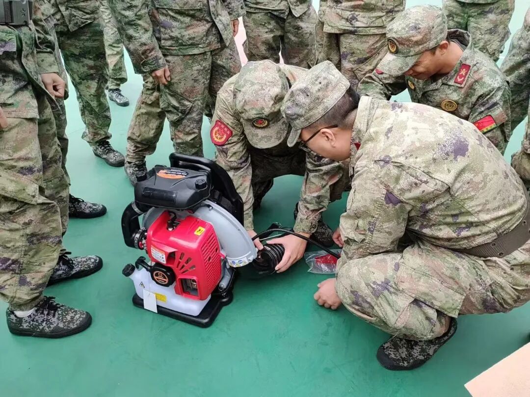 集訓(xùn)首日,特別邀請(qǐng)了水口鎮(zhèn)專職消防隊(duì)前來(lái)授課指導(dǎo),通過(guò)理論講解與實(shí)操演示相結(jié)合的方式,為民兵們帶來(lái)了一堂生動(dòng)的滅火裝備知識(shí)課。理論學(xué)習(xí)結(jié)束后,隨即轉(zhuǎn)入實(shí)操訓(xùn)練環(huán)節(jié)。在風(fēng)機(jī)操作現(xiàn)場(chǎng),消防隊(duì)員們按照講解步驟,分組進(jìn)行開(kāi)機(jī)、調(diào)試、移動(dòng)等動(dòng)作練習(xí),逐一糾正不規(guī)范操作,確保每位基干民兵都能熟練掌握操作技巧。滅火把訓(xùn)練中,民兵們手持滅火把,模擬不同火情場(chǎng)景,練習(xí)滅火姿勢(shì)和滅火方法,動(dòng)作標(biāo)準(zhǔn)、配合默契,展現(xiàn)出良好的訓(xùn)練作風(fēng)和濃厚的參訓(xùn)熱情。