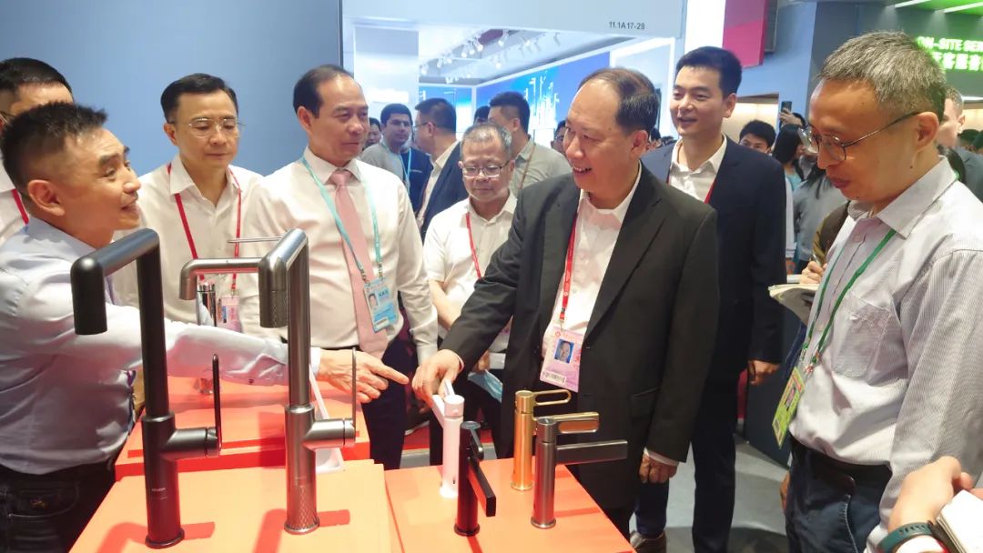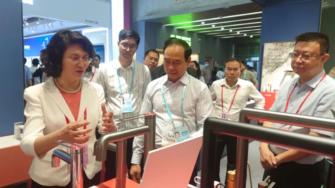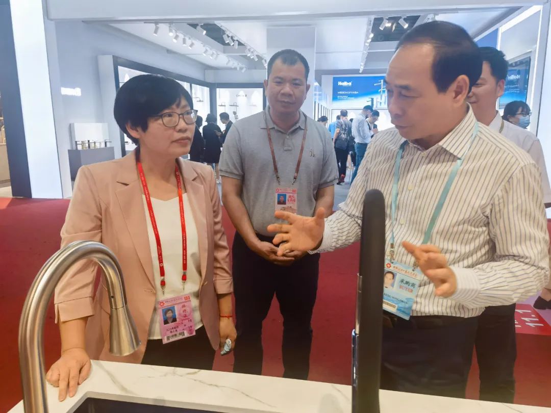 商務(wù)部黨組副書記、國(guó)際貿(mào)易談判代表兼副部長(zhǎng)王受文來(lái)到華藝衛(wèi)浴展位前,饒有興致地觀看產(chǎn)品演示,詳細(xì)了解企業(yè)參展情況,并對(duì)華藝衛(wèi)浴產(chǎn)品質(zhì)量給予高度評(píng)價(jià)。