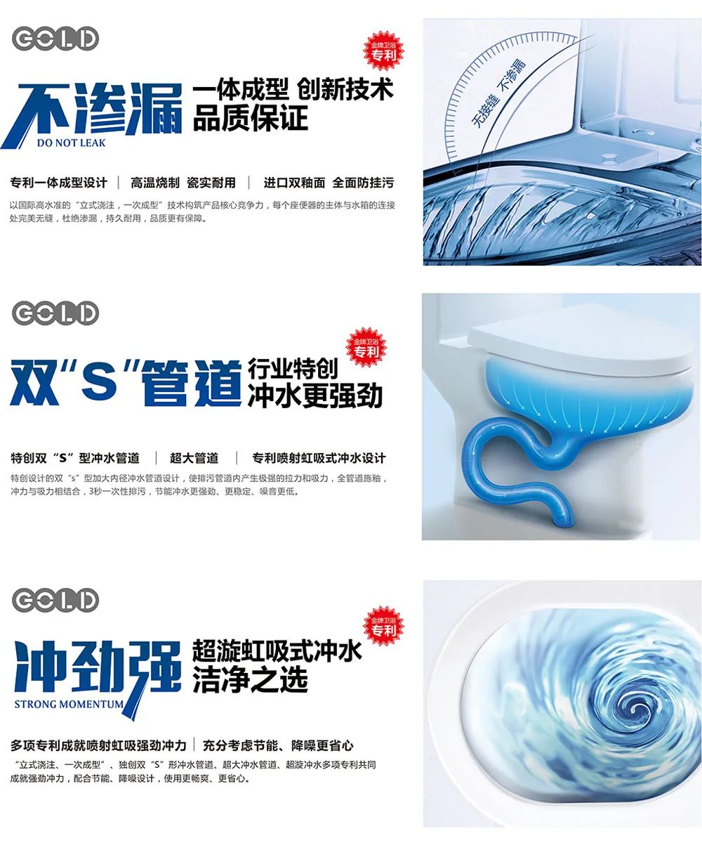 金牌衛(wèi)浴致力于技術(shù)創(chuàng)新,著眼于消費者市場的智能化和高端化趨勢,積極研發(fā)新產(chǎn)品、新工藝和新科技,是業(yè)內(nèi)最早實現(xiàn)真正自主研發(fā)和生產(chǎn)全套整體衛(wèi)浴的領(lǐng)先企業(yè)。金牌衛(wèi)浴擁有10年以上生產(chǎn)技術(shù)人才300余人、專精化高技術(shù)人才100多人、復合型管理人才50余人,榮獲9項行業(yè)率先技術(shù)認證,“一體成型工藝”“泡沫云盾技術(shù)”“空氣阻虹防逆流技術(shù)”“雙重抗菌工藝”等多個關(guān)鍵技術(shù)領(lǐng)先行業(yè)。獲得包括3項發(fā)明專利在內(nèi)多項發(fā)明創(chuàng)造,首創(chuàng)的“雙重潔凈技術(shù)”,實現(xiàn)一次啟動,兩次虹吸,率先突破行業(yè)節(jié)水極限,實現(xiàn)新時代智能化與綠色化的高質(zhì)量發(fā)展。