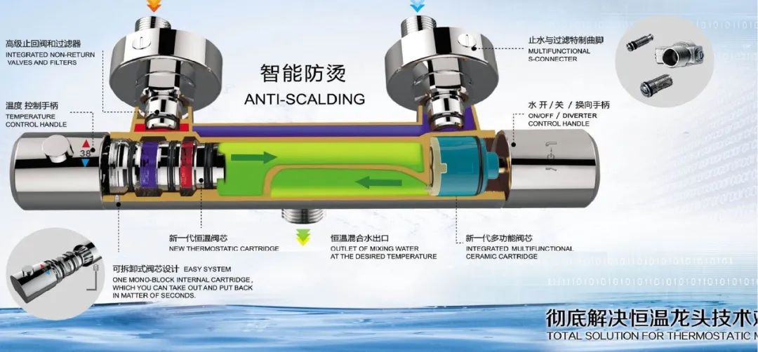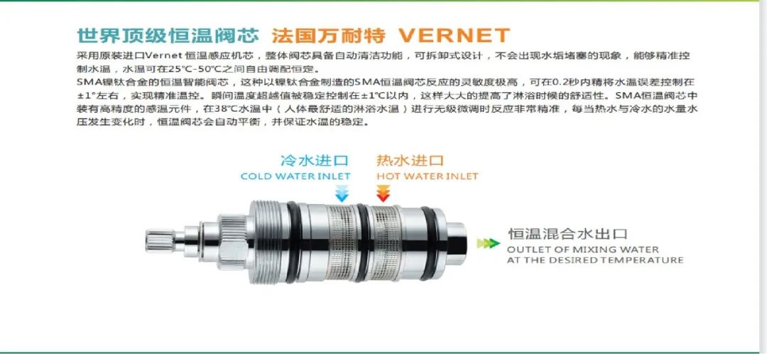 可拆卸式恒溫閥芯設(shè)計(jì),使用行業(yè)內(nèi)最好的靈敏感應(yīng)原件,確保閥芯可以長(zhǎng)時(shí)間使用而沒(méi)有后顧之憂(yōu)。