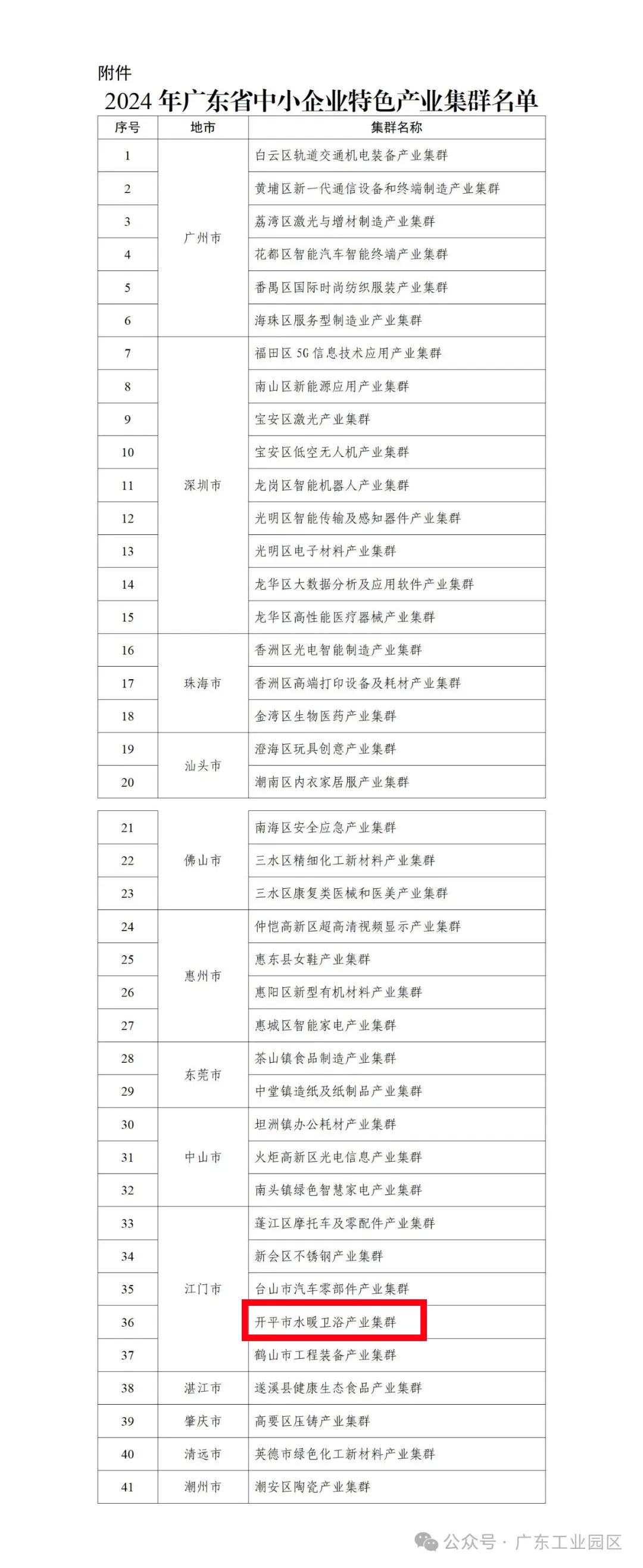近日,2024年度廣東省中小企業(yè)特色產(chǎn)業(yè)集群名單已正式公布,“開平市水暖衛(wèi)浴產(chǎn)業(yè)集群”名列其中。