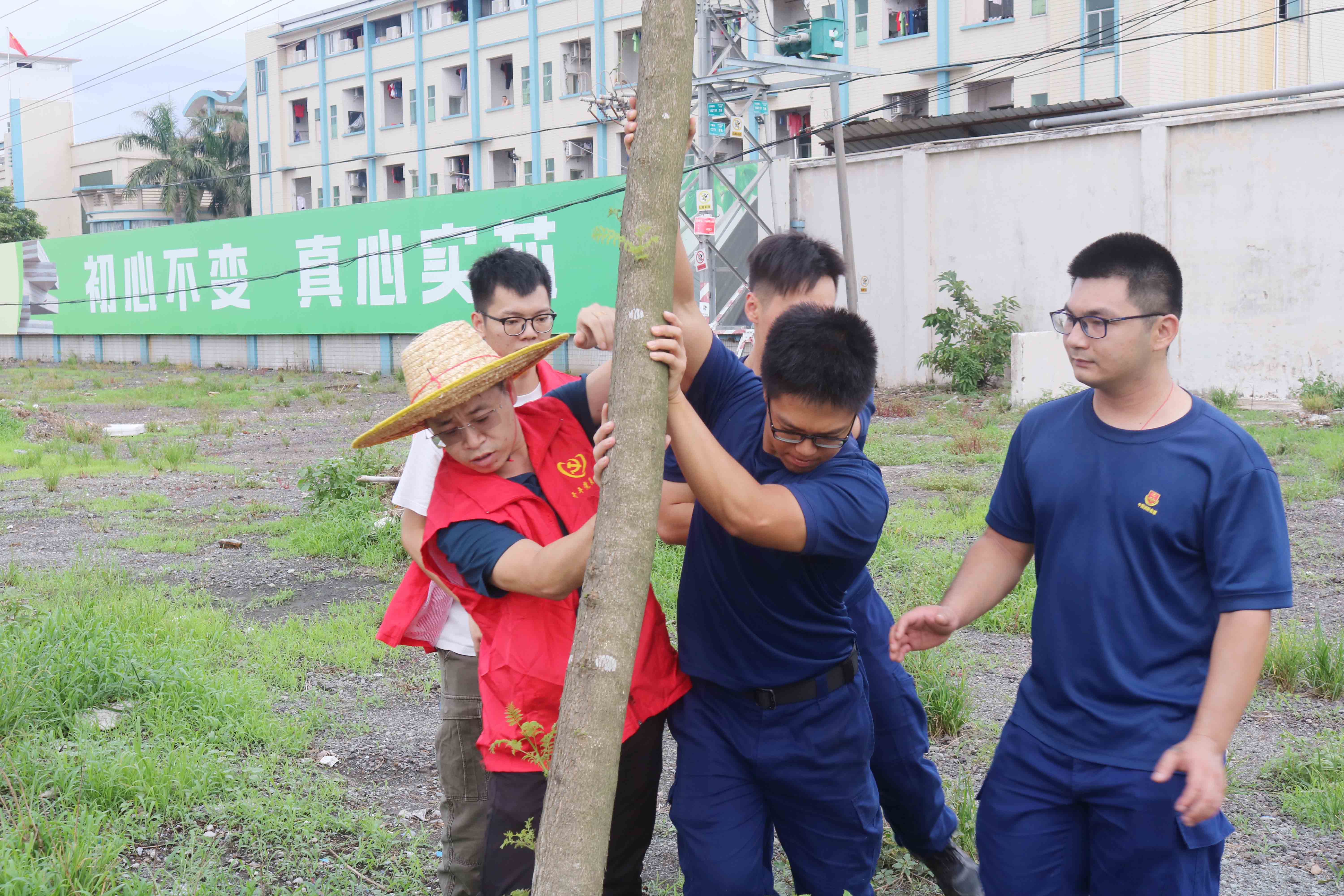 抵達(dá)現(xiàn)場(chǎng)后,志愿者們迅速明確分工,相互配合。先是合力拉起纖繩,扶正倒伏樹木,并用竹子加固支撐;接著彎下腰來耐心清掃土壤附著的垃圾和雜物;最后為樹木根部澆水保濕。在大家的通力協(xié)作下,受傷樹木重新煥發(fā)勃勃生機(jī)。