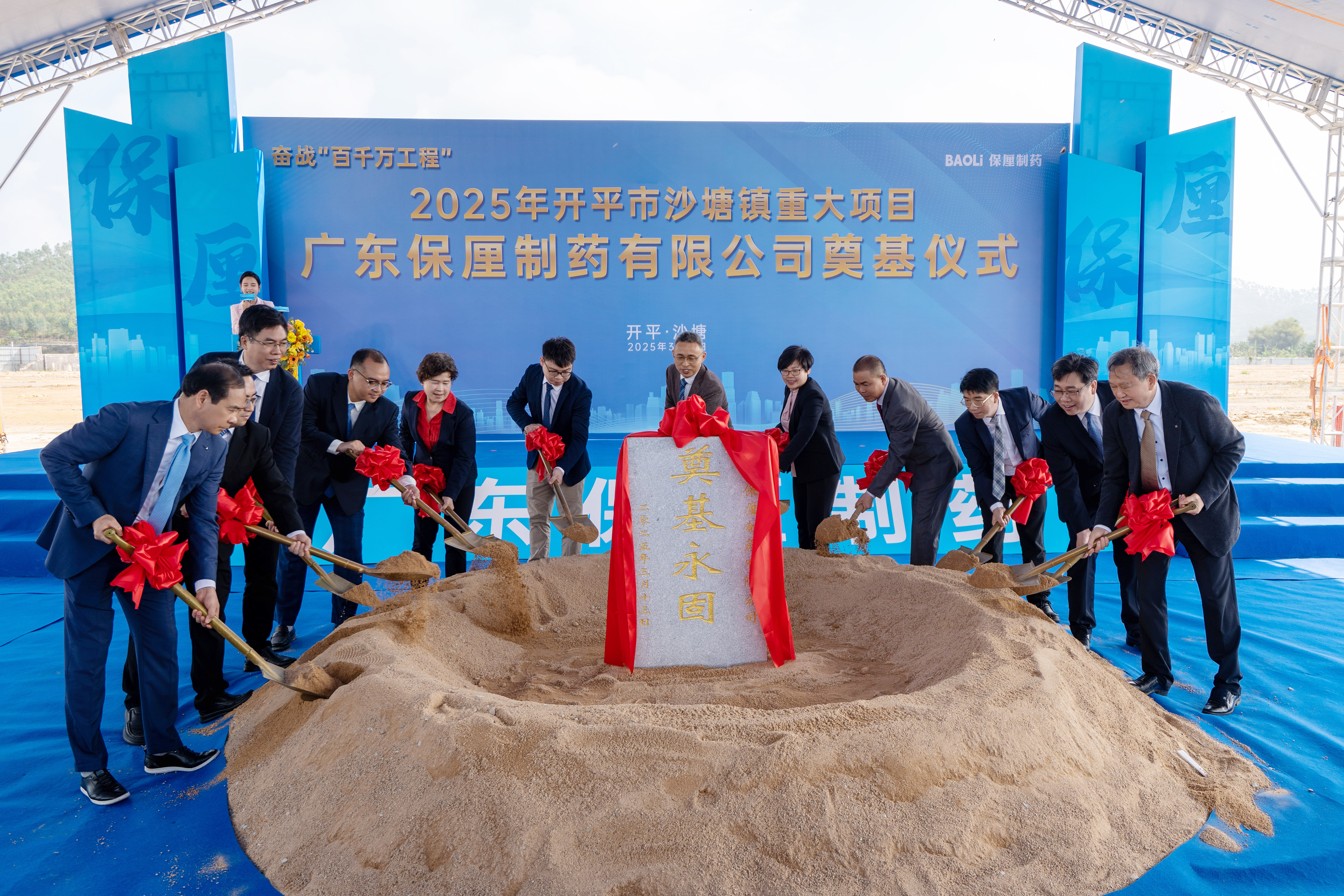 3月13日上午,廣東保厘制藥有限公司在沙塘鎮(zhèn)正式奠基,為推動全市生物醫(yī)藥與健康產(chǎn)業(yè)高質量發(fā)展注入新的強勁動力。江門市人大常委會黨組成員、副主任余中華,開平市委副書記、市長陳小曼,市人大常委會黨組書記、主任李寶貞等出席儀式。