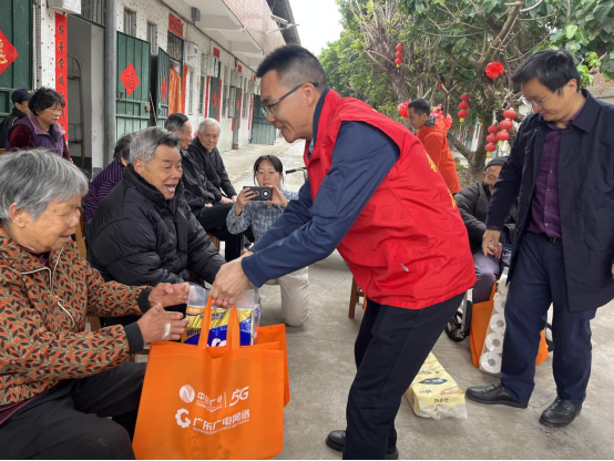 活動現(xiàn)場,蜆岡鎮(zhèn)機關黨支部與廣東廣電網(wǎng)絡江門開平分公司第一黨支部為玲瓏村老人送上精心準備的“暖心禮包”。玲瓏村老人:“多謝黨和企業(yè)的惦記,不僅為我們送上暖心的慰問品還免費升級光纖網(wǎng)絡,現(xiàn)在畫面清楚得像面對面!”
