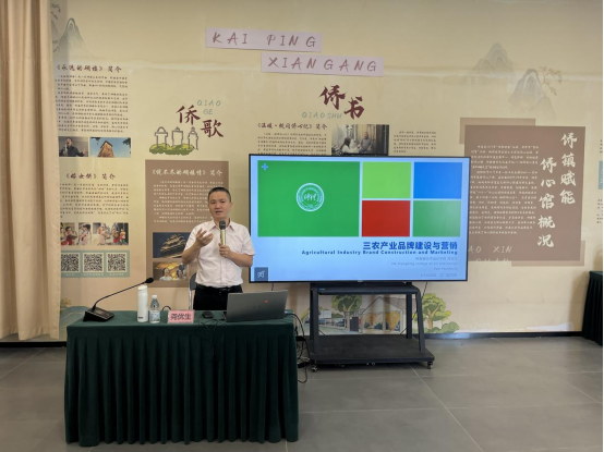 專題講座上,堯優(yōu)生圍繞農(nóng)業(yè)模式與生態(tài)設(shè)計(jì)的關(guān)系、品牌是什么、什么是品牌運(yùn)營等方面進(jìn)行了細(xì)致的講解。通過理論框架解析與典型案例剖析相結(jié)合的方式,堯優(yōu)生生動(dòng)展示了“生態(tài)設(shè)計(jì)優(yōu)化產(chǎn)業(yè)鏈、文化敘事激活品牌溢價(jià)、數(shù)字工具重構(gòu)消費(fèi)場(chǎng)景”的現(xiàn)代農(nóng)業(yè)品牌升級(jí)方法論,這既為與會(huì)人員提供了品牌戰(zhàn)略的理論工具,又為本土農(nóng)業(yè)企業(yè)指明了品牌運(yùn)營的實(shí)踐路徑,對(duì)提升蜆岡鎮(zhèn)農(nóng)業(yè)品牌溢價(jià)能力、構(gòu)建現(xiàn)代農(nóng)業(yè)產(chǎn)業(yè)體系具有重要指導(dǎo)價(jià)值。