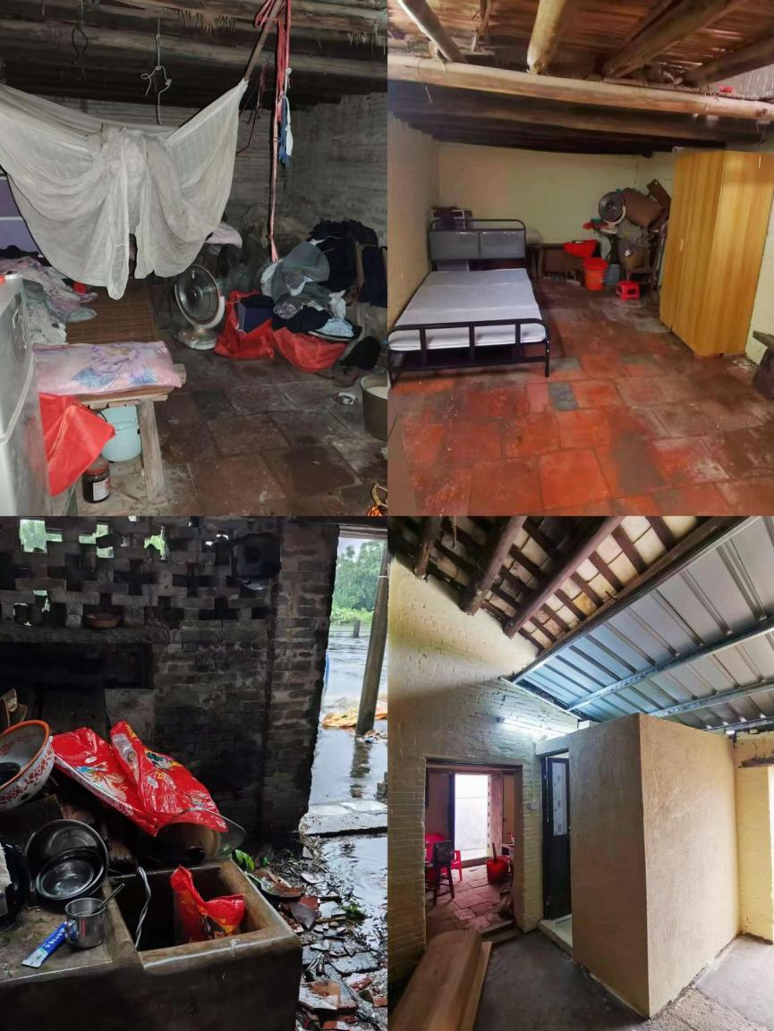 從部隊退伍回到南興村后,黃伯守著祖輩傳下的老屋過了大半輩子,無兒無女的日子里,唯有村口那座傾斜的碉樓與他作伴??蛇@座老屋早已扛不住歲月的敲打,一場突如其來的暴雨致使老房子屋頂?shù)顾?,露出窗口大的窟窿,雨水裹著泥沙灌進(jìn)屋里,在地面砸出一個個泥坑。更讓老人犯難的是如廁問題,家里沒有衛(wèi)生間,每次都得穿過半個村子去公共廁所,遇上刮風(fēng)下雨,更是不便。作為村里的特困救助對象,他的生活開銷全靠政府補貼,看著屋頂?shù)钠贫春瓦b遠(yuǎn)的衛(wèi)生間,修繕房屋的念頭在心里盤桓了多年,卻總在摸了摸口袋后悄悄壓下。