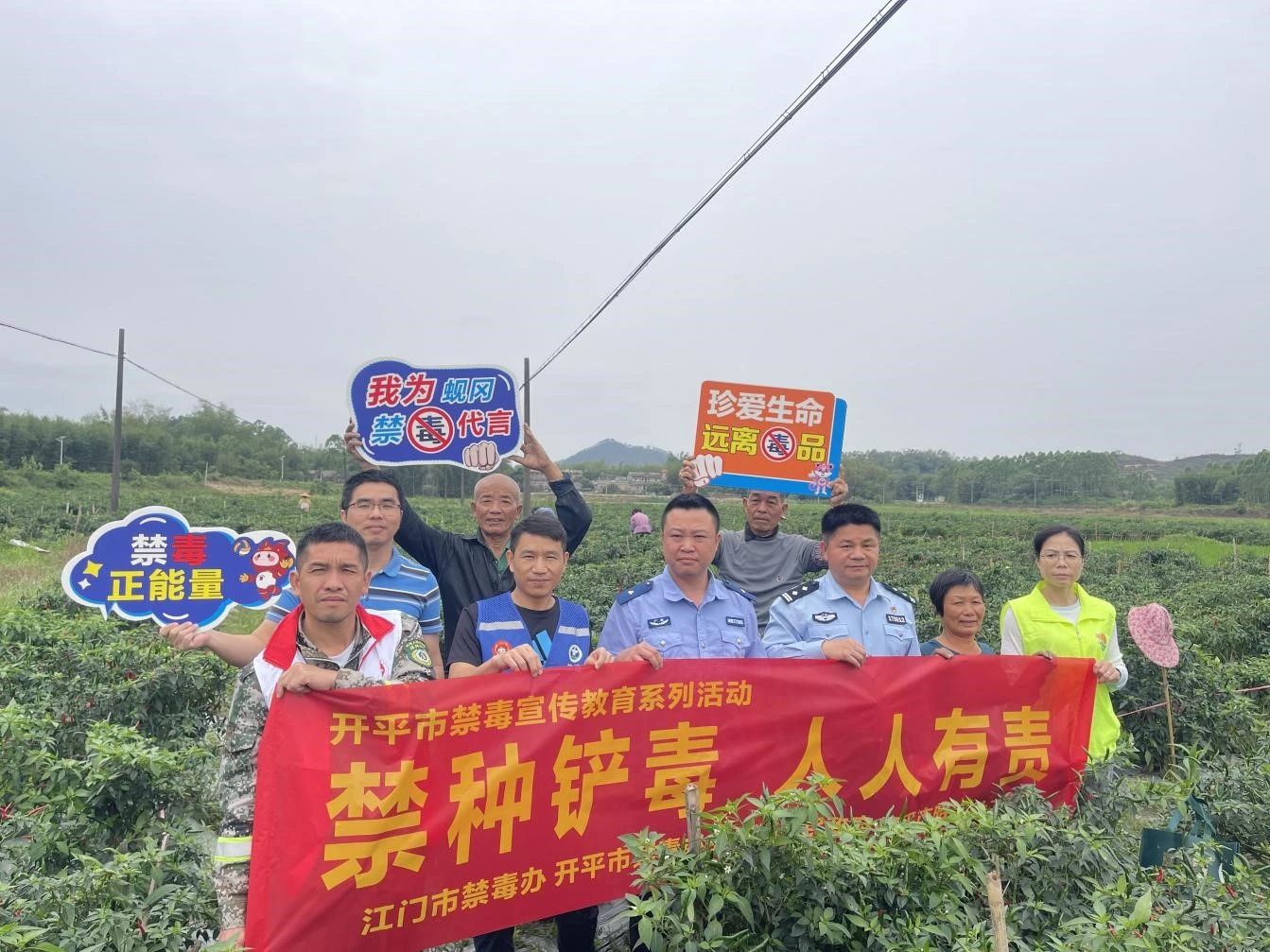 當(dāng)前正是春耕播種時期,為落實禁種鏟毒工作,實現(xiàn)“零種植、零產(chǎn)量”目標(biāo),4月9日上午,蜆岡鎮(zhèn)禁毒工作領(lǐng)導(dǎo)小組辦公室聯(lián)合蜆岡派出所、鎮(zhèn)農(nóng)業(yè)農(nóng)村辦公室、鎮(zhèn)邑康家園、開平市昭宇社會工作綜合服務(wù)中心,在長樂村開展“禁種鏟毒,人人有責(zé)”為主題的宣傳活動。