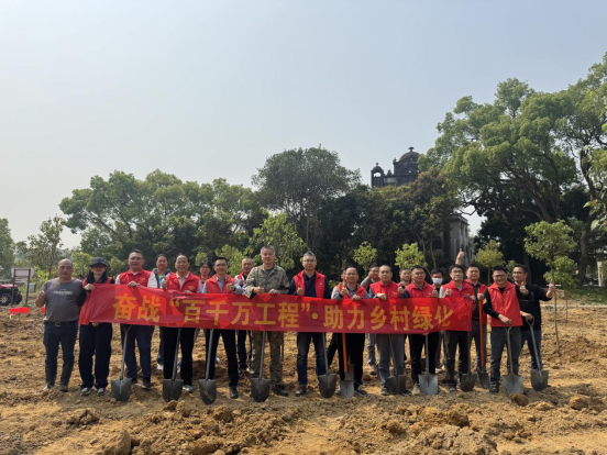 活動現(xiàn)場呈現(xiàn)一派熱火朝天的勞動景象,黨員干部們干勁十足、熱情高漲,有的搬運樹苗,有的填土壓實,有的修剪枝葉,以實際行動為典型村增添綠植、增加生機、提高綠質(zhì)、豐富生態(tài)底色貢獻力量。一株株樟樹苗扎根于牛過塘里,與古樹公園內(nèi)的百年老樟樹相映成趣,為蜆岡鎮(zhèn)的生態(tài)文明建設(shè)注入了新的活力。